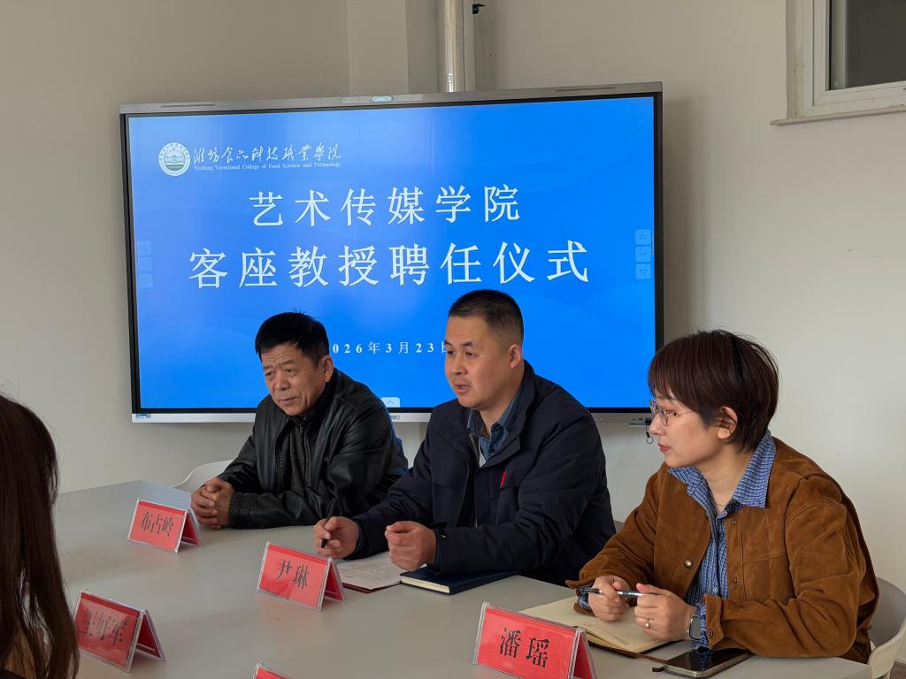2026年3月23日上午,艺术传媒学院举行客座教授聘任仪式,正式聘任知名画家、聊城大学美术与设计学院副教授王好军为学院客座教授。艺术传媒学院院长尹琳,副院长布占岭、潘瑶及学院部分教师代表共同参加了聘任仪式。