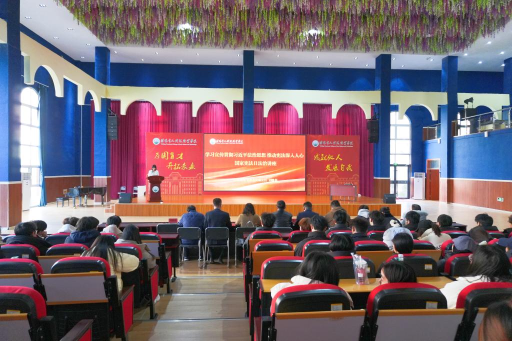 为深入学习宣传贯彻习近平法治思想,进一步强化师生法治意识,筑牢法治校园建设根基,12月4日,在第十二个国家宪法日来临之际,我校举办“学习宣传贯彻习近平法治思想,推动宪法深入人心”主题法治讲座。学校常务副校长李保城出席并致辞,纪委书记王京崇出席活动,校长助理兼党政办公室主任刘璐嘉主持活动,相关职能部门、二级学院负责人及师生代表参加。