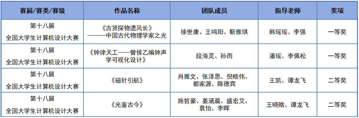 全国大学生计算机设计大赛是教育部高等学校计算机类专业教学指导委员会主办的全国性高水平学科竞赛,旨在培养大学生创新意识和团队合作精神。我校艺术传媒学院高度重视此项赛事,长期坚持“以赛促教、以赛促学”的教学模式,不断为学生搭建实践创新的广阔平台,助力学生在竞赛中锤炼技能、提升素养。大赛筹备过程中,从选题阶段的头脑风暴,到技术创作过程中攻克重重难关,再到作品优化时的精益求精,每一个环节都凝聚着艺术传媒学院师生的智慧与汗水。最终,凭借极具前瞻性的创意构思、精湛成熟的技术表现及对艺术与技术融合的深刻理解,学院作品在众多参赛作品中脱颖而出,斩获佳绩。本次获奖作品将于8月上旬参加全国总决赛。