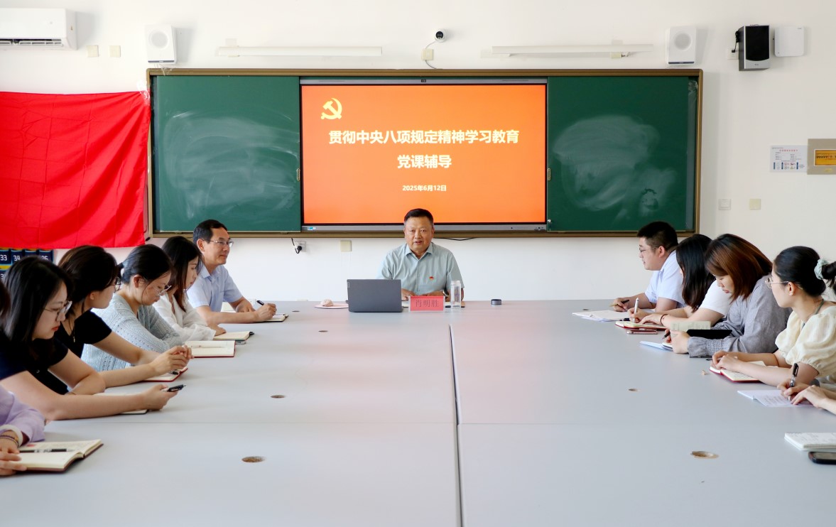为推动中央八项规定精神学习教育,进一步加强作风建设,6月12日,学校党委书记肖明胜到艺术传媒学院作深入贯彻中央八项规定精神学习教育党课辅导,艺术传媒学院全体教师参会学习。