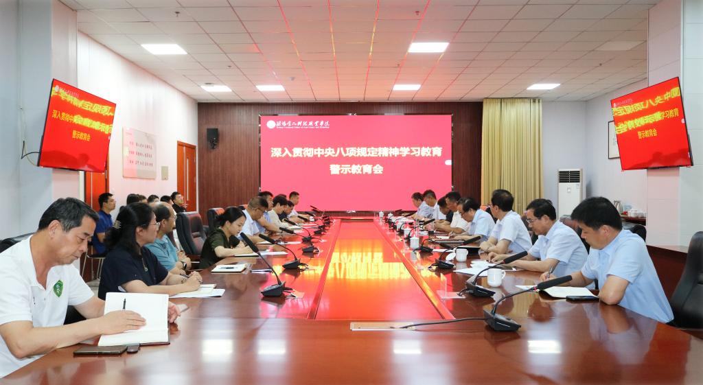 6月25日,我校召开深入贯彻中央八项规定精神警示教育会。党委书记肖明胜主持会议并讲话;党委副书记、校长亓俊忠等校领导,省派党建指导员出席会议;各党支部书记,各部门、二级学院主要负责人,党群工作部、宣传统战部、纪委、学生工作部相关人员参加会议。